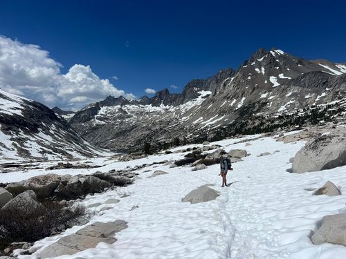 We also went up and over Pinchot (12,090’), and Bishop Pass (11,972’). We took a polar plunge into some alpine lakes including Marjorie Lake and the enchanting Rae Lakes.